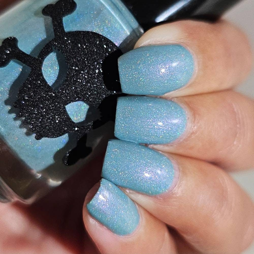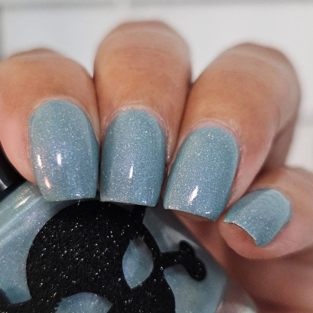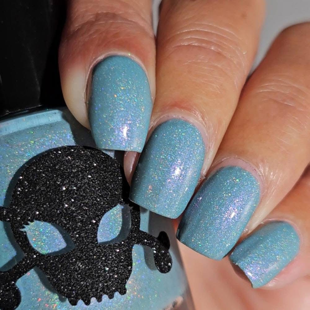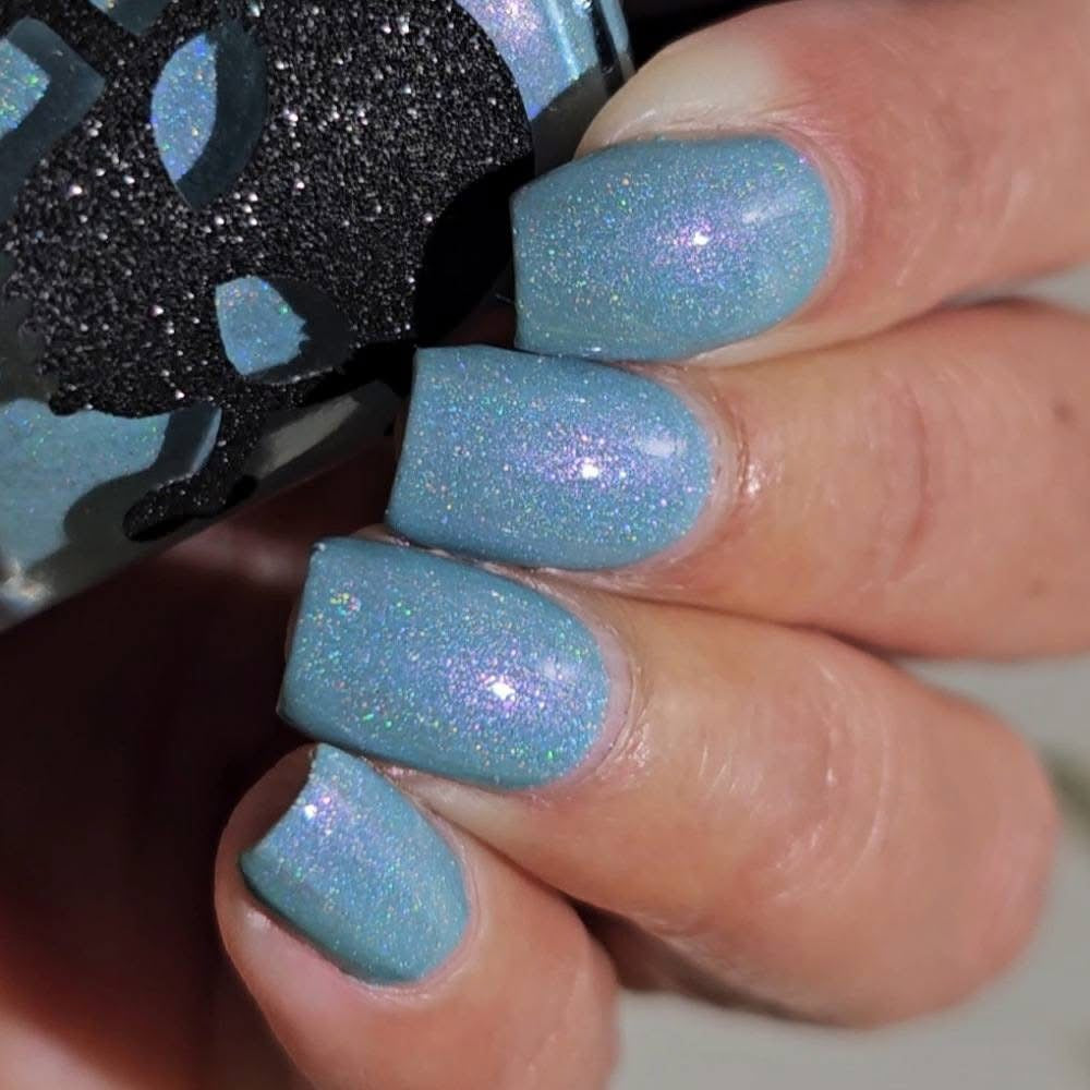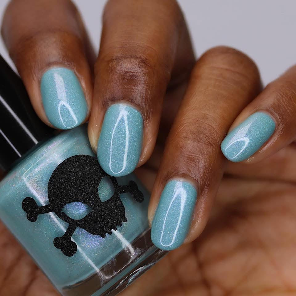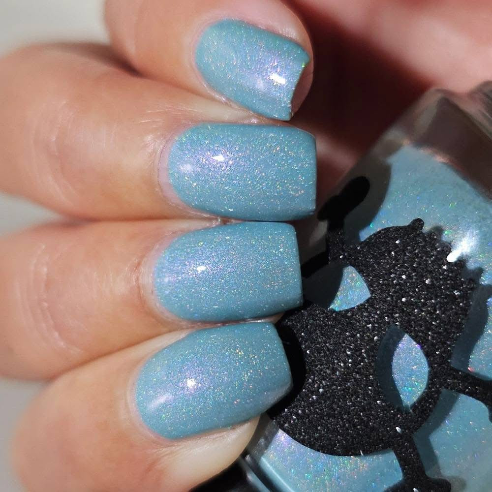 Celestial is inspired by my love for twilight and the chill of the seasonal weather. Cyan is a light blue crelly with scattered holo and holo glitters with a touch of pink and purple shimmer.